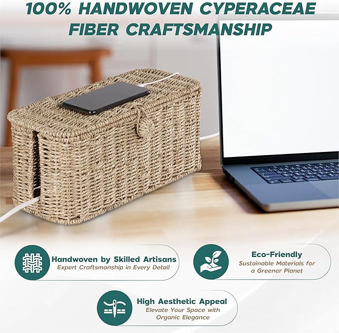 - πΏ Crafted from Natural Cyperaceae Fiber: Handwoven by skilled artisans from Vietnam, this cable management box is made using durable and eco-conscious Cyperaceae fibers. Its natural texture showcases the beauty of traditional craftsmanship, ensuring both strength and sustainability.