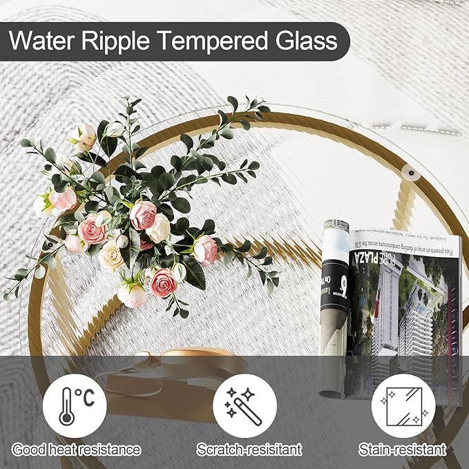 - ✔BEAUTY & STURDY:The surface of the glass table has a unique texture,adding a stylish vibe to the living room.Its simple, smooth line design and glass material complement each other, and can be easily integrated into a variety of modern decoration styles