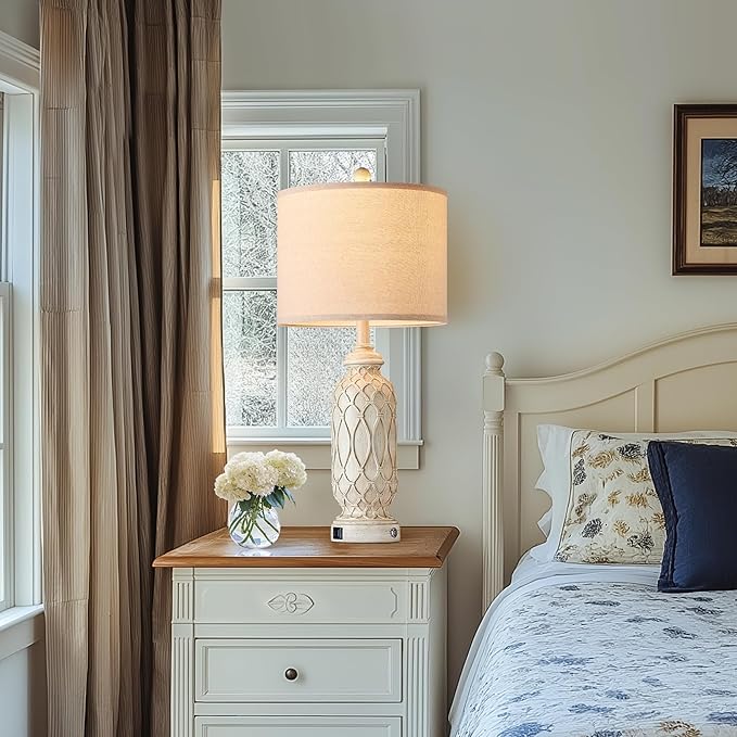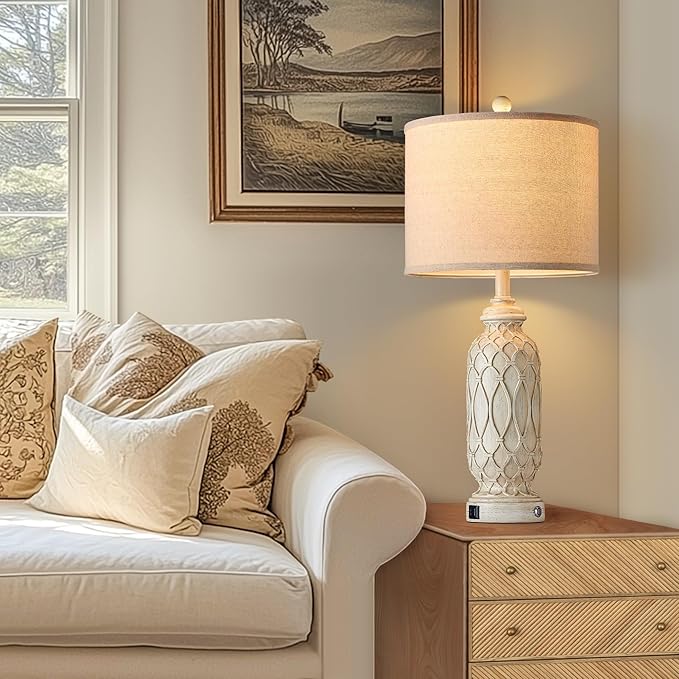 - Farmhouse Design: Featured with resin lamp body and linen lampshade, farmhouse table lamp creats classic, vintage and rustic atmosphere. You can put them in your living room, bedroom, dining room or any room you like