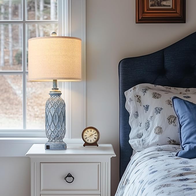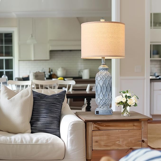 - Farmhouse Design: Featured with resin lamp body and linen lampshade, farmhouse table lamp creats classic, vintage and rustic atmosphere. You can put them in your living room, bedroom, dining room or any room you like