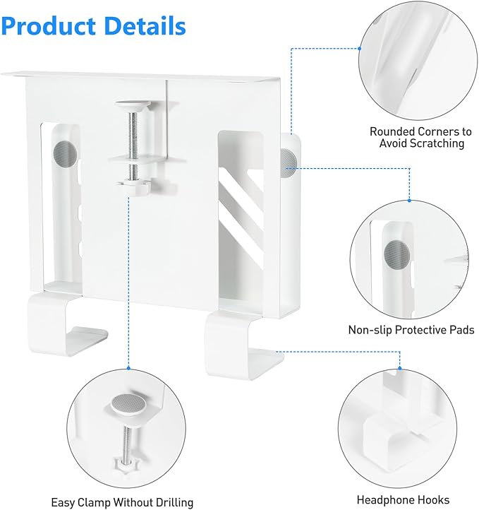 - 【Clamp Under Desk Storage & No Drill Design】Our clamp on side desk storage requires no drilling or tools. The rubber cushion prevents scratches on desks and other objects, and the rounded corners design also helps avoid scratches.