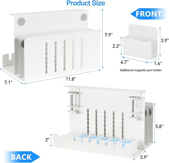 - 【High Quality Material】This metal side hanging desk organizer is crafted from high quality iron. This sturdy under-desk laptop holder supports up to 22lbs and can be paired with magnetic cable holders, USB hubs, and other devices.