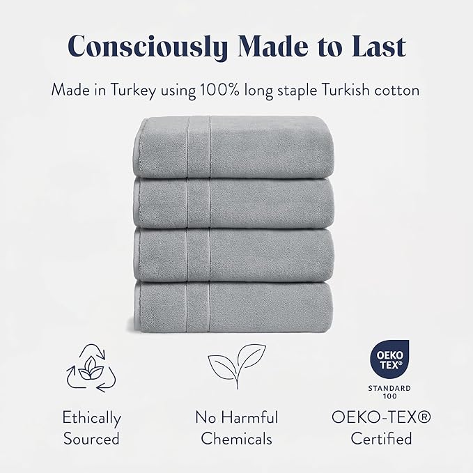 - OUR LUXURY TOWEL WEAVE: Elevate your bathroom with the supreme softness of Turkish cotton bath towels. Made from 100% premium Turkish cotton, their 820 GSM and z-twist construction deliver a superior combination of softness and durability.