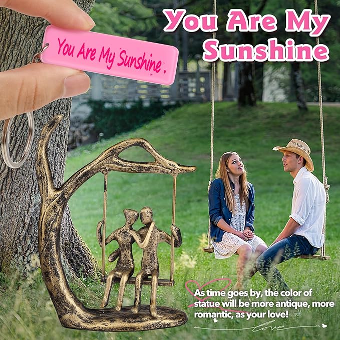 - Eternal Couple Iron Sculpture: Our inspiring swing couple figurine cast iron sculpture through unique appearance to represent an emotion or mark a memory, deeply express love, closeness, healing, courage, hope, all the meaningful relationship of a life well lived. Awesome iron gifts for her or him at any time. It will always bring a happy smile and a romantic feel. And the cute size of it is 4.92 x 2.13 x 6.54 inches, adding a touch of elegance to any space
