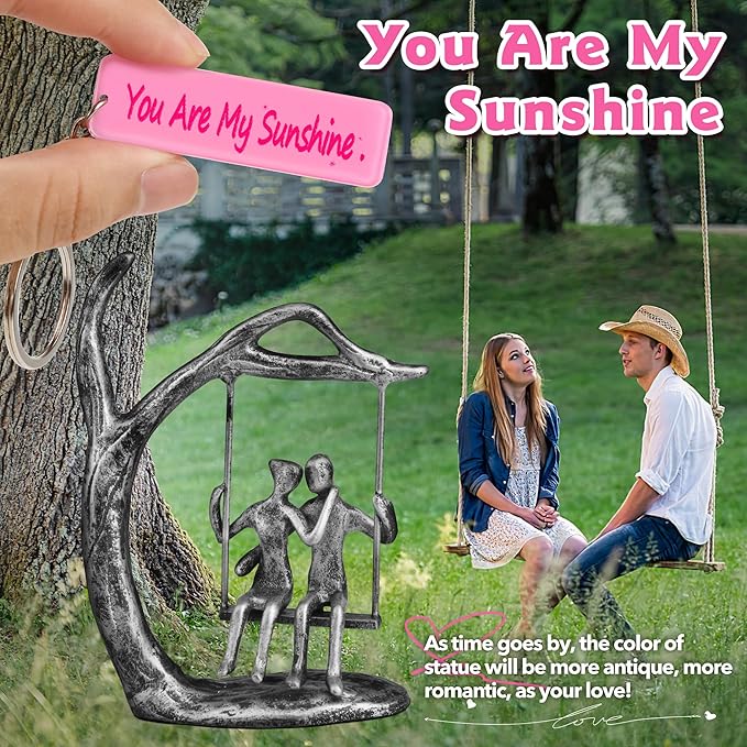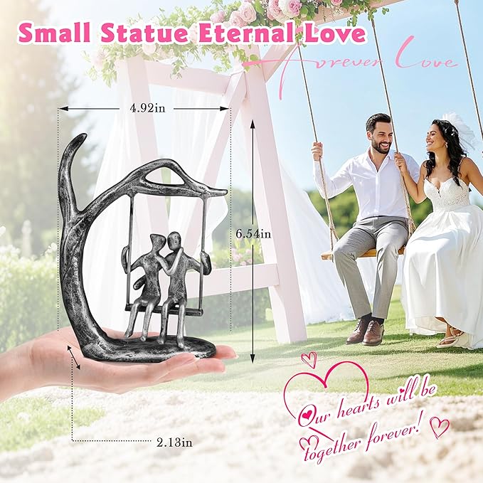 - Eternal Couple Iron Sculpture: Our inspiring swing couple figurine cast iron sculpture through unique appearance to represent an emotion or mark a memory, deeply express love, closeness, healing, courage, hope, all the meaningful relationship of a life well lived. Awesome iron gifts for her or him at any time. It will always bring a happy smile and a romantic feel. And the cute size of it is 4.92 x 2.13 x 6.54 inches, adding a touch of elegance to any space