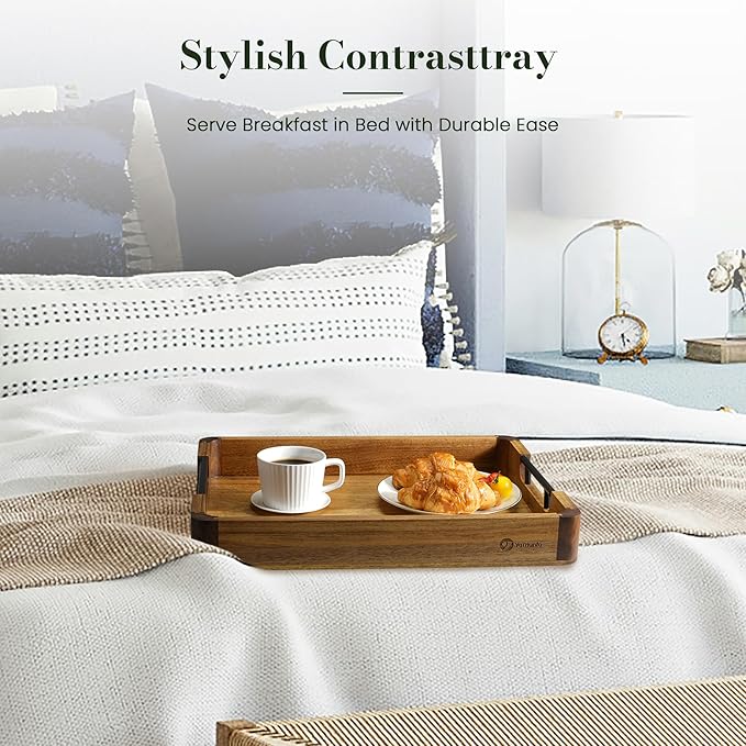 - Durable Acacia And Walnut Wood Tray – Our coffee table tray combines durable acacia wood with rich walnut corners to bring you decorative serving trays that offer a timeless blend of golden warmth and deep brown elegance while being sturdy enough for daily use even in the long run