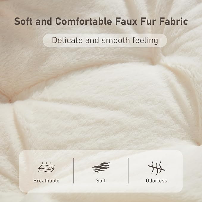 - Comfortable as Clouds: Our living room chair is made of exquisite anti slip faux fur fabric, which is comfortable, skin friendly,breathable and odorless.The inclined backrest fully fits your back curve, allowing you to enjoy relaxation. In addition, the full PP cotton inside the seat provides good support for your thighs, knees and head.This ergonomic cozy chair with ottoman has a spacious seat with a unfolded size of 32.2"D × 27.5" W × 33"H, making it easy for you to stretch your body freely