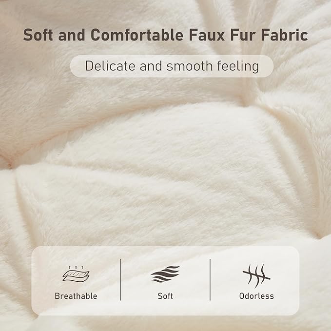 - Comfortable as Clouds: Our living room chair is made of exquisite anti slip faux fur fabric, which is comfortable, skin friendly,breathable and odorless.The inclined backrest fully fits your back curve, allowing you to enjoy relaxation. In addition, the full PP cotton inside the seat provides good support for your thighs, knees and head.This ergonomic cozy chair has a spacious seat with a unfolded size of 32.2"D × 27.5" W × 33"H, making it easy for you to stretch your body freely
