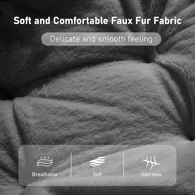 - Comfortable as Clouds: Our living room chair is made of exquisite anti slip faux fur fabric, which is comfortable, skin friendly,breathable and odorless.The inclined backrest fully fits your back curve, allowing you to enjoy relaxation. In addition, the full PP cotton inside the seat provides good support for your thighs, knees and head.This ergonomic cozy chair with ottoman has a spacious seat with a unfolded size of 32.2"D × 27.5" W × 33"H, making it easy for you to stretch your body freely