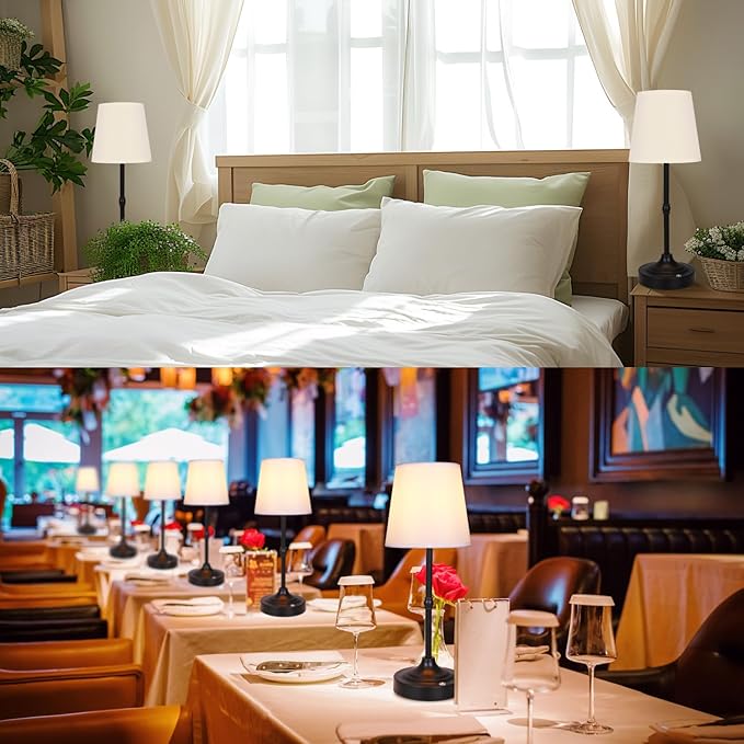 Rechargeable Battery Powered Table Lamp, Wireless LED Lamps, Cordless Touch Lamps, Stepless Dimmable Bedside Lamps, Night Lamp for Bedroom, Dinning Room, Kitchen Decor, Office (Black)