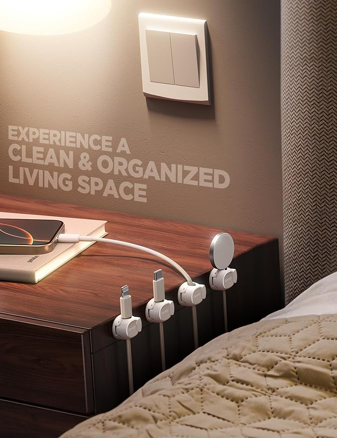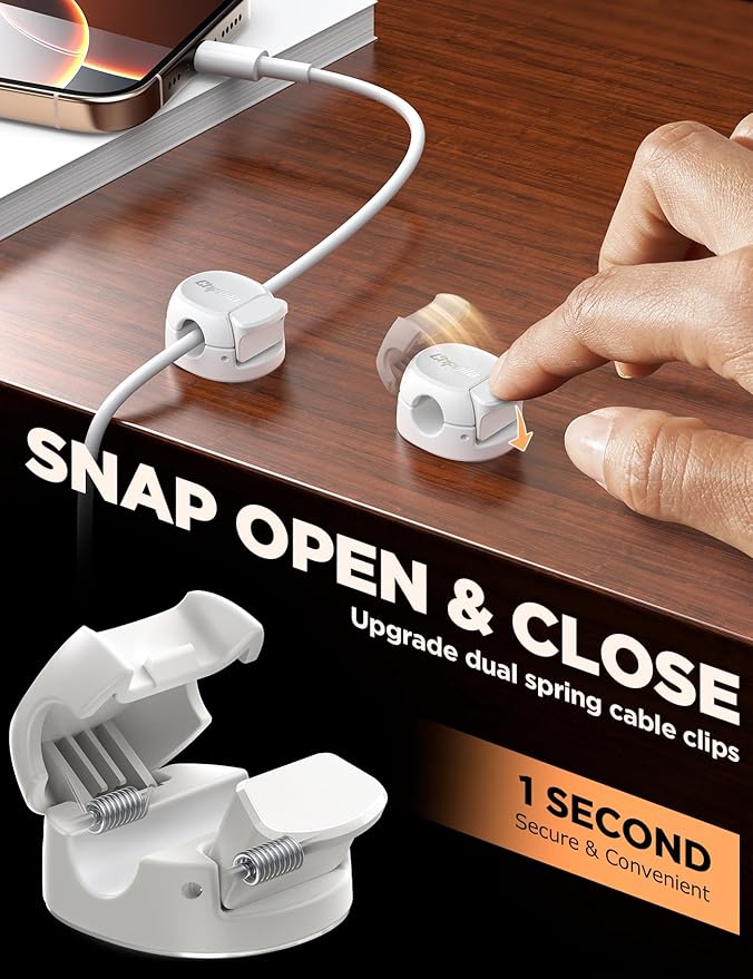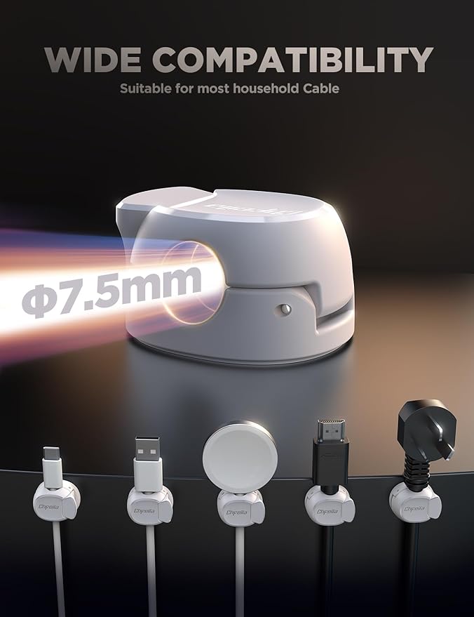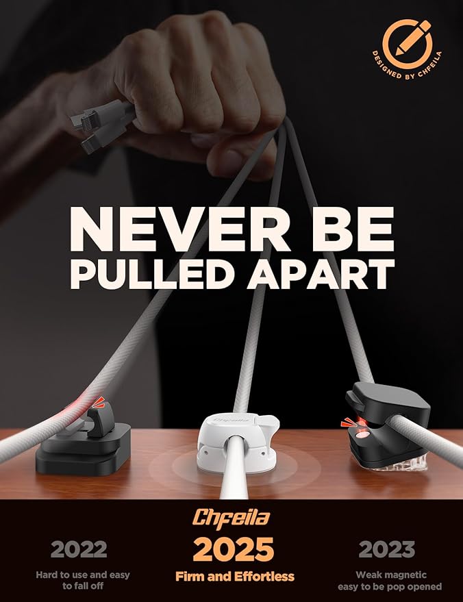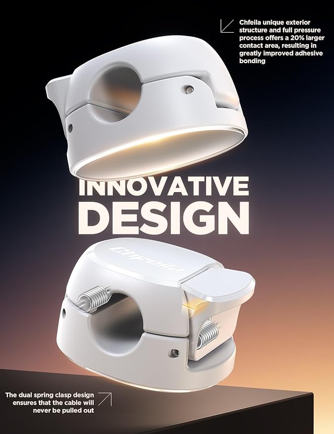 - ✅【Never Be Pulled Apart, Snap Open & Close】Chfeila's charging cord holder are a game-changer in cable management. Our revolutionary dual spring and clasp design ensures that your cables stay securely in place, no matter how much tugging or pulling they endure. The ingenious snap-open, soft-press mechanism makes adding or removing cables a breeze, providing a seamless user experience. Say goodbye to tangled cords and accidental disconnections that disrupt your workflow or relaxation time.