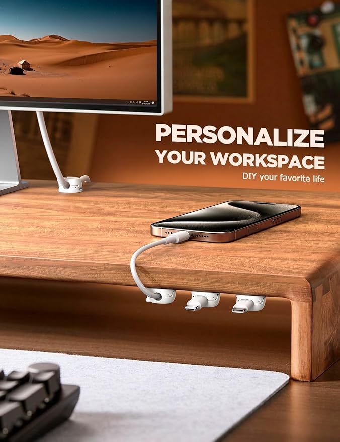- ✅【Cable Organizer Extraordinaire】Transform your living space into a clutter-free haven. Chfeila cord organizer for desk effortlessly organize your cables, keeping your desk, nightstand, or workspace neat and tidy. Say goodbye to tangled cords and hello to a more organized and aesthetically pleasing environment. By eliminating cable clutter, you can enhance your productivity, reduce stress, and create a more serene workspace. Imagine a clutter-free desk where you can focus on your work without distractions.