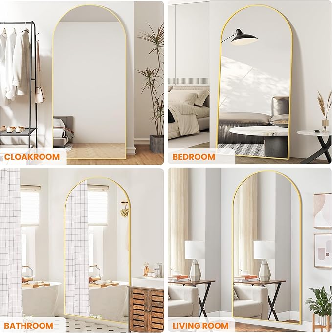 - Wall mirror has a classic arch shape with a shatterproof design. It can be hung on the wall or stand on the floor and is suitable for a variety of home styles such as modern classical boho. Product size is 75" x 35''.