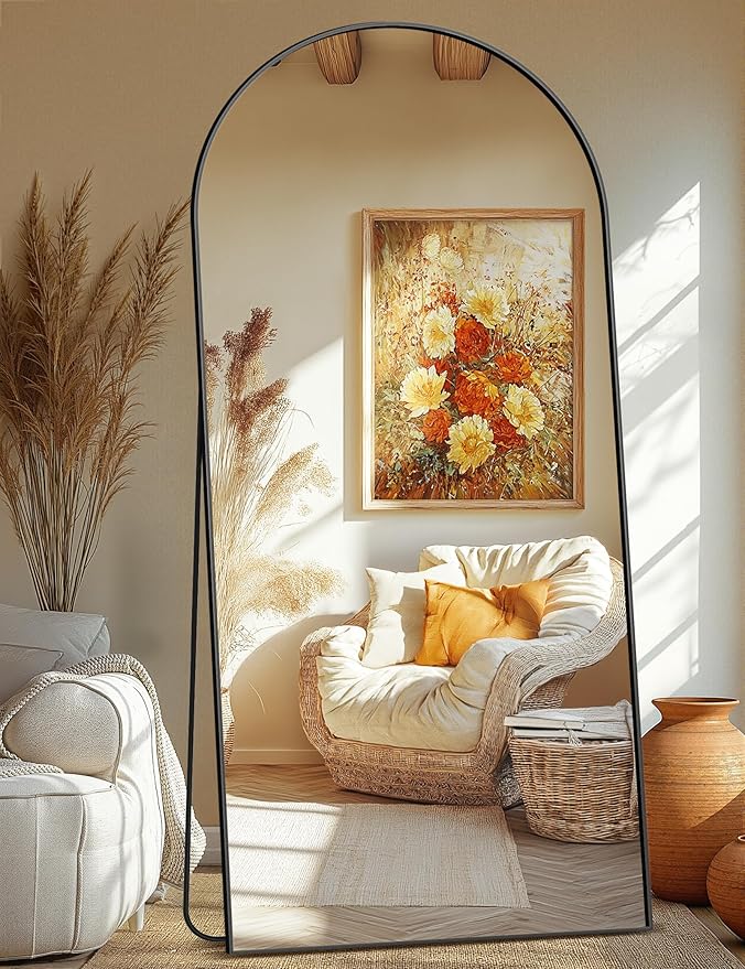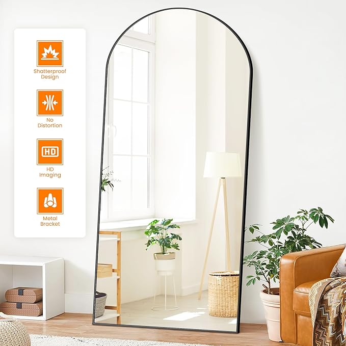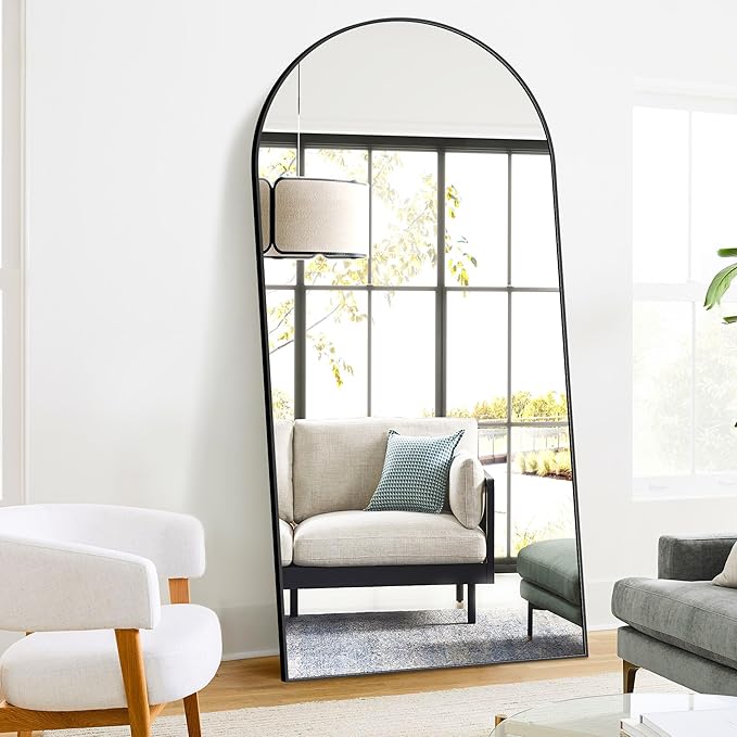 Full Length Arched Mirror, 75"x35" Standing Floor Full Body Mirror for Wall with Aluminum Alloy Frame for Bedroom, Living Room, Dressing Room(Black)