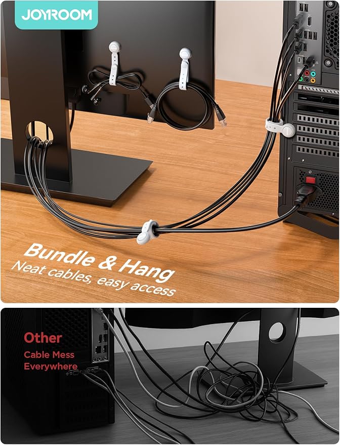 - 【Endless Uses for Everyday Organization】More than just a magnetic cord organizer, JOYROOM magnetic ties are designed for endless uses. They are perfect for bundling office cords, hanging charging cables and securing kitchen appliance cords to keep your space tidy and clutter-free. The strong magnetic design attaches them to metal surfaces, perfect for hanging keys, headphones, kitchen tools and other small items. Use them to organize backpacks, bundle travel essentials, secure bike lights, or even as a quick hold strap for household items. Durable, reusable and versatile, these magnetic cord clips are the perfect solution for keeping things tidy at home, in the office or on the go!