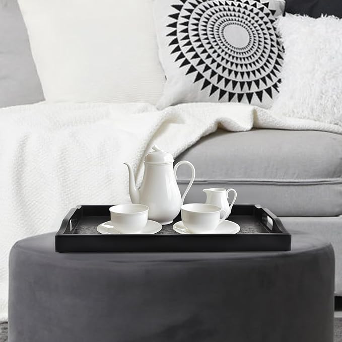 Plastic Serving Tray with Handles, 16.5" x 10.6" Rectangular Ottoman Tray for Meals, Decor or Party, Buffet, Coffee Table, Kitchen, Restaurant (Black)