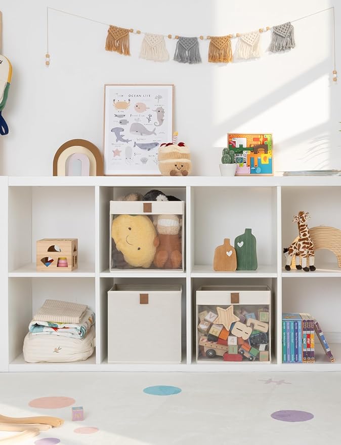 - Soft PU Pull-Tab: Equipped with soft and sturdy PU handles, these cube storage bins offer a smooth and comfortable grip. Designed for convenience, they make it simple to transport your storage cubes from one location to another.