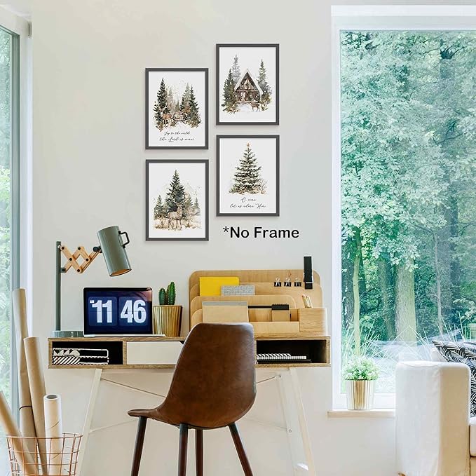 TLESKE Winter Deer Reindeer Christmas Carols Posters Prints Unframed Set of 4, Vintage Christmas Tree Wall Art Prints Decor for Living Room Bedroom, Joy to the World Wall Pictures, 12x16
