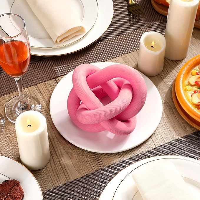 3 Link Wood Knot Decor - Hand Carved Coffee Table Decoration, Boho Chain Link Decor, Modern Shelf, Rustic Objects for Home Living Room Bedroom(Pea-Pink)