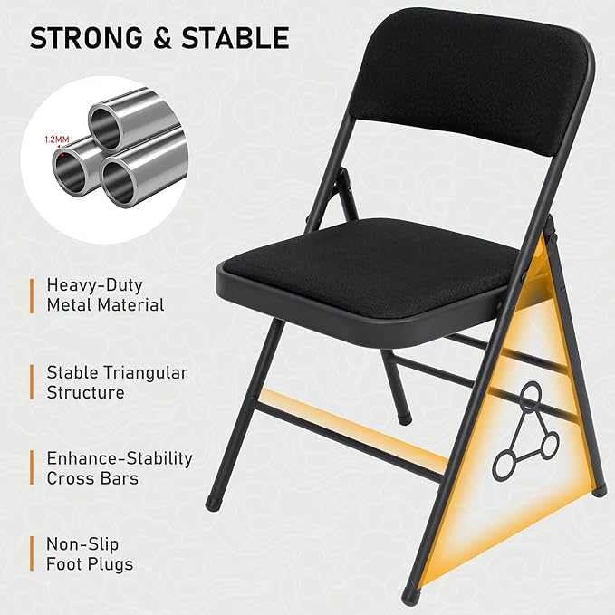 SEALAMB 6 Pack Fabric Folding Chairs with Padded Seats & Cushion, Metal Foldable Chairs for Wedding Party, Commercial Chairs for Office School Church Events, 350lb Capacity (Black-Fabric, 6 Pack)