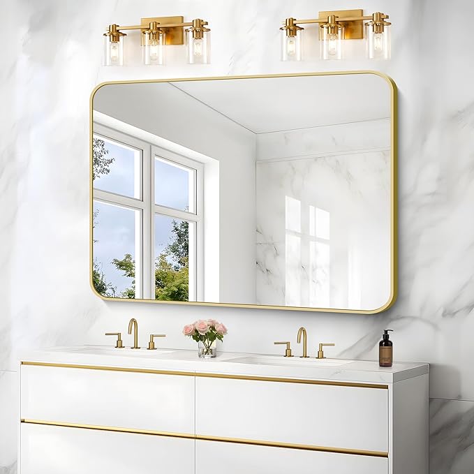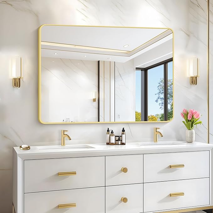 36"x48" Bathroom Mirror, Gold Rectangle Mirror, Large Rectangular Wall Mirror, Rounded Corner Vanity Mirror with Aluminum Metal Frame for Bathroom Bedroom Living Room Horizontal/Vertical