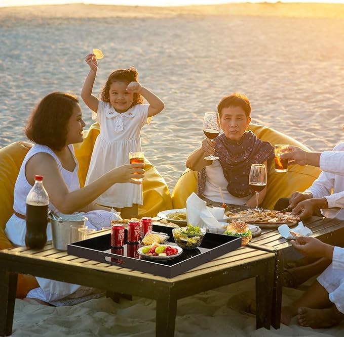 17×17 inches Oversized Black Acrylic Ottoman Tray Extra Large Decorative Tray Spill-Proof Serving Trays with Handles King-Size Safe Edge Organizer for Coffee Table Countertop Breakfast