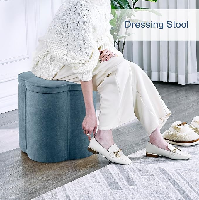- 【Versatile Design】This flower-shaped ottoman foot stool not only serves as a footrest but can also be used as a storage furniture, The Navy Blue color complements various decor styles, making it a versatile addition.