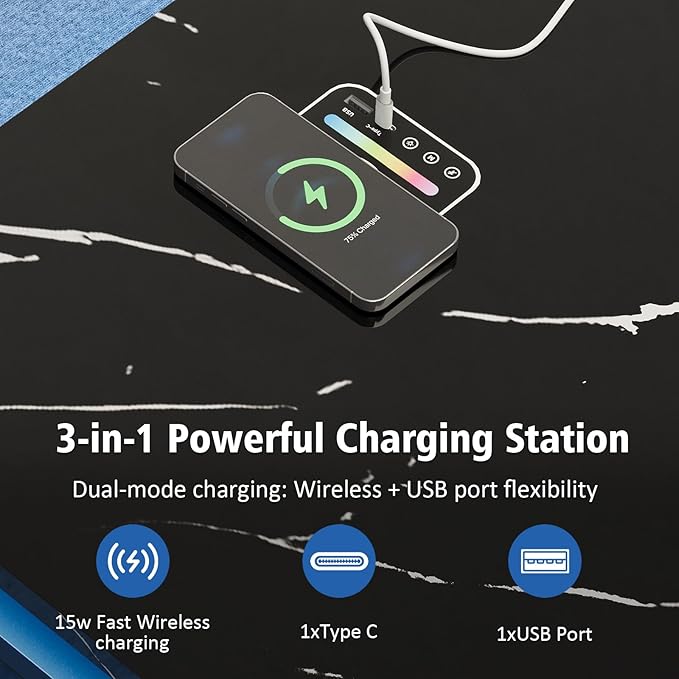 - 【3-in-1 Fast Charging Station】This smart coffee table for the living room features 15W wireless fast charging, dual USB-C/USB ports, and powers laptops, headphones, game consoles, and other devices—no cable clutter.