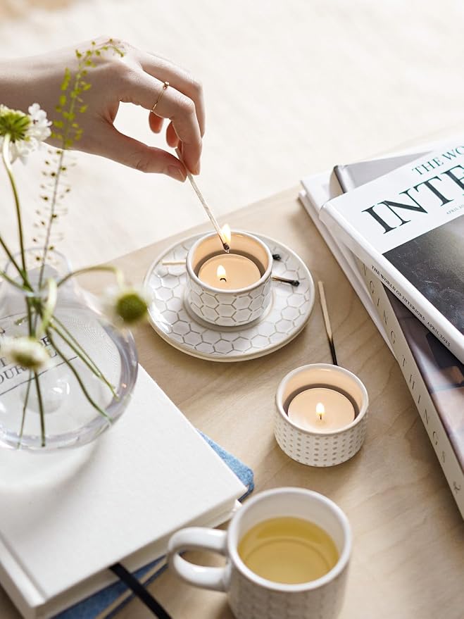 - Table Decor: Candles are a great way to create ambiance in any occasion, and the right candleholder can make them even more radiant. Whether it's for a wedding, holiday party, or family gathering, these cute little candle holders are ideal for you.Each white small ceramic tealight candle holder features a unique pattern. Beautiful and elegant farmhouse designs add artistic charm to your party table and reflects your personal style