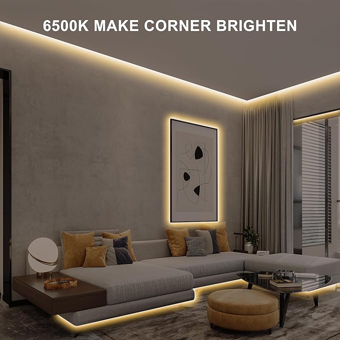 - Bright COB Strip Light: 32.8ft High density white led strip with 3200 leds makes light more soft and uniform brings more comfortable lighting mood, easy to light up dark area