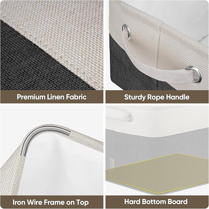 - [DURABLE MATERIAL] Made from premium quality linen fabric, storage baskets for shelves are built to last. The fabric is sturdy, resistant to wear and tear, and easy to clean. You can simply wipe them down with a damp cloth, and these organizer bins will look as good as new