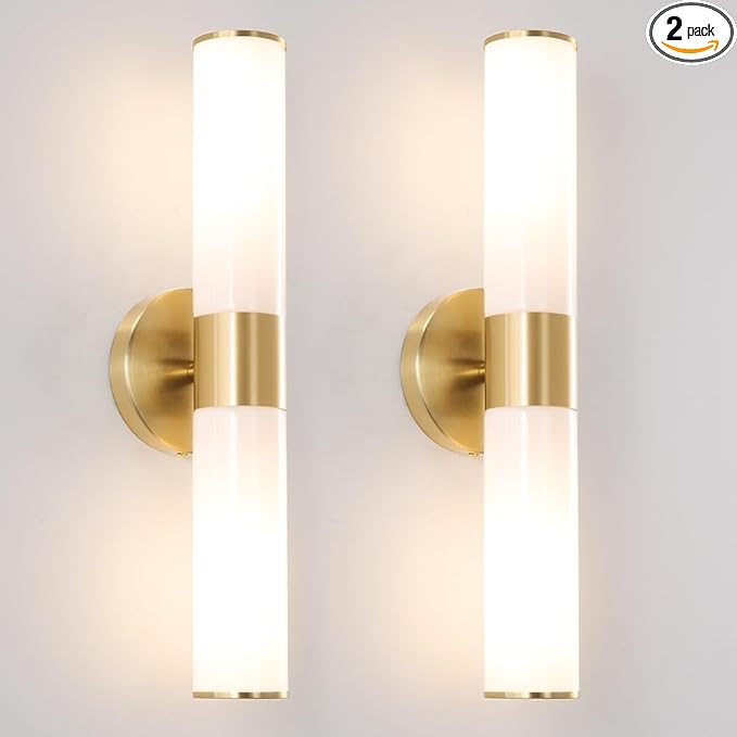 - 【Classic Design】 These wall sconces set of 2 feature a sleek brass gold finish lamp body accompanied by white glass shades.The bathroom vanity light is suitable for various decoration styles, making it the perfect choice to enhance your home lighting
