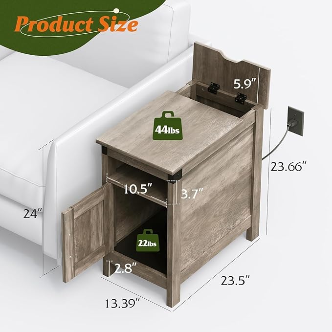 - 【Charging Station】This Greige end table has 2 AC outlets and 2 USB ports, keeping power at your fingertips and never worrying about charging when you use your electronic devices on the couch.
