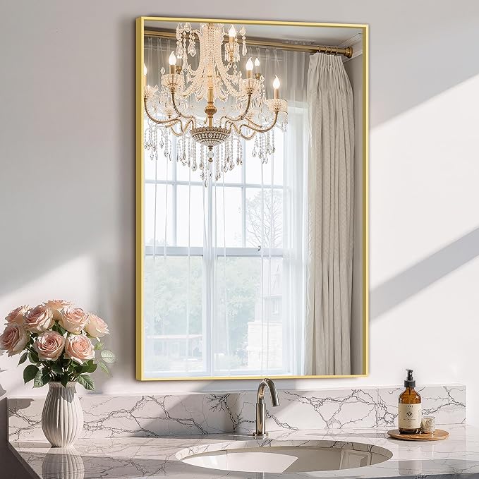 Bathroom Vanity Mirror for Wall, 20" x 30" Metal Framed Rectangular Bathroom Wall Mirror for Over Sink, HD Shatterproof Glass, Hangs Horizontally or Vertically(Gold)
