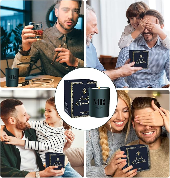 Scented Candle Gifts Set - Men Candle Set, Scented Candles for Home, Gifts for Men Aromatherapy Gift Set, Ideal for Dad Fathers Day Husband Boyfriend (Smoke & Vanilla)