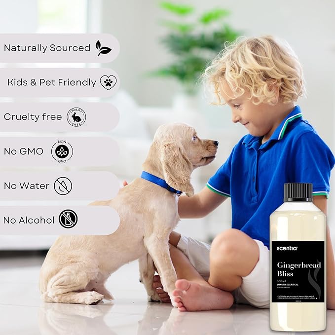 Scentia Gingerbread Bliss Fragrance Oil – 500ml Professional Christmas Diffuser Oil | Cozy Holiday Blend with Ginger, Nutmeg, Cinnamon & Vanilla | Aromatherapy for Homes, Spas, Hotels & DIY Supplies