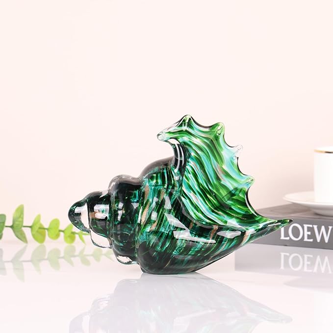 - 【Elegant Coastal Art】Capture the serene beauty of the ocean with this glass conch shell sculpture. Its intricate blown glass art design and vibrant colors make it a stunning addition to beachy decor and ideal shelf decorations for living room, adding elegance to modern and coastal interiors.