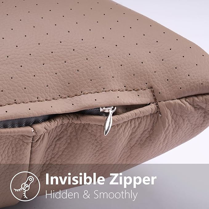 - ✔️【HIDDEN ZIPPER】Smooth hidden zipper adds to the beauty of the leather pillow covers, you can easily zipper them up. The zipper is responsive and not sharp edged, so you don't have to worry about the leather getting scratched.With double stitched and quilted seams for extra strength and durability.