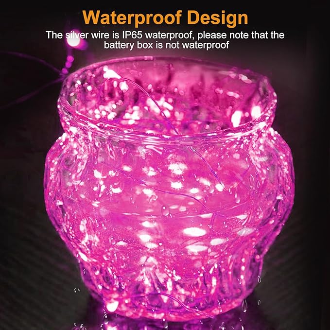 - IP65 Waterproof and Safe to Use: Light string supports IP65 waterproof, can be submersible in water (Battery box is not waterproof). Powered by a safe 1.5V low voltage, and will not heat or short-circuit even after a long use, safe of touch and use