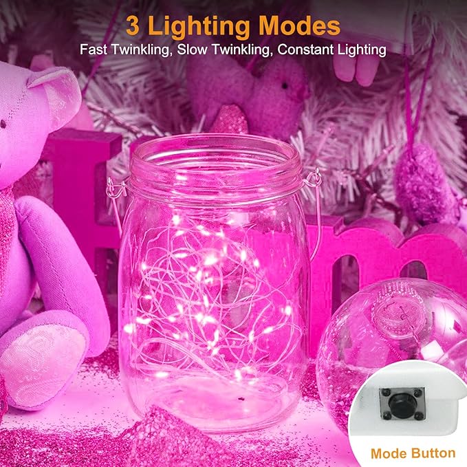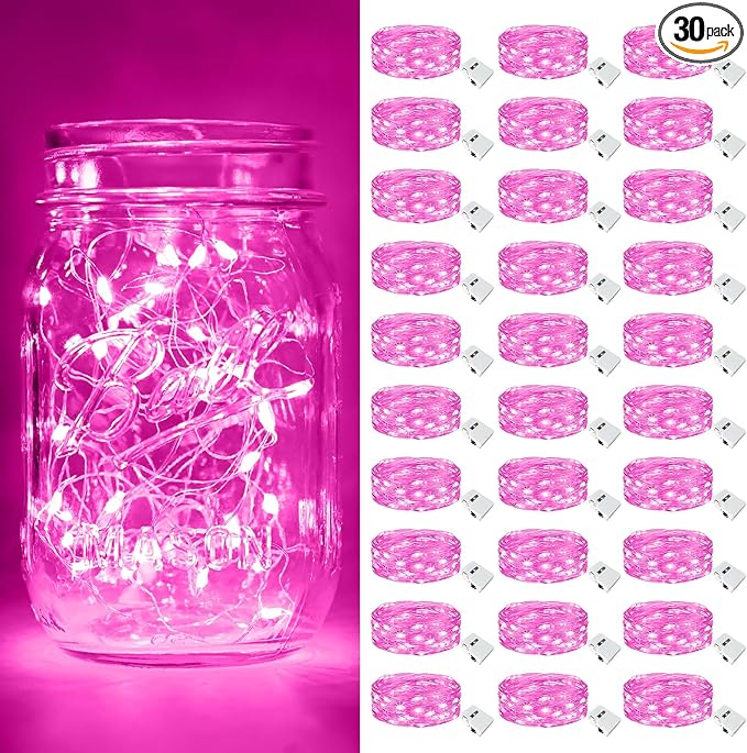 btfarm 30 Pack Fairy Lights Battery Operated [3 Modes], Valentine's Day Lights 7ft 20 Led Twinkle String Lights Waterproof Bulk Small Mini for Mason Jars Vases Wedding Table Centerpiece, Pink