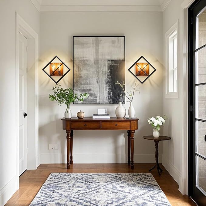 - Durable & Elegant Hall Light Fixture Wall Mount:Our black hallway wall sconce is sturdy metal frame , becomes a durable and unique wall light fixtures for living room dining room