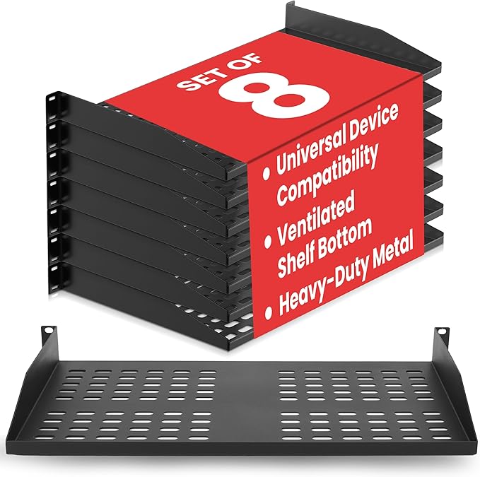 - ENHANCED AIRFLOW DESIGN: This 8-pack of individual 1U server rack shelves features vented metal construction, ensuring excellent air circulation to reduce heat build-up. This maintains safe temperatures, extending equipment lifespan.