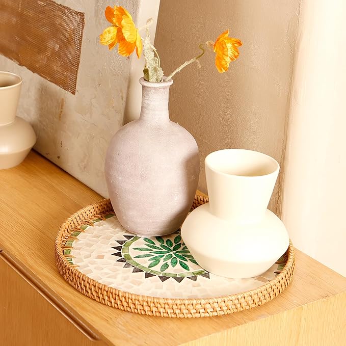 - Handwoven with Care: Each tray is carefully woven by skilled artisans, natural rattan texture and the subtle shine of seashells, reflecting a high level of craftsmanship and attention to detail