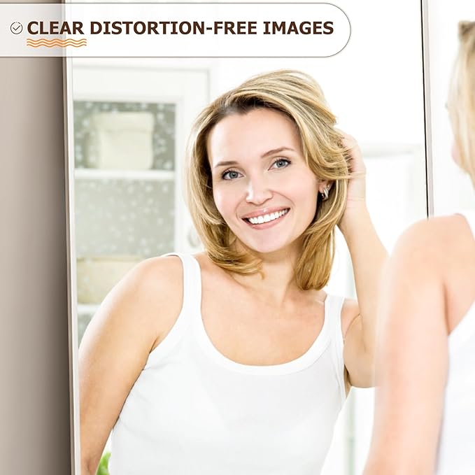 • High Definition and Explosion-Proof: Our full-length wall mirror is crafted from high-quality float glass, providing ultra-high-definition imaging and distortion-free reflection. The back is covered with an explosion-proof film, ensuring safety in case of accidental damage