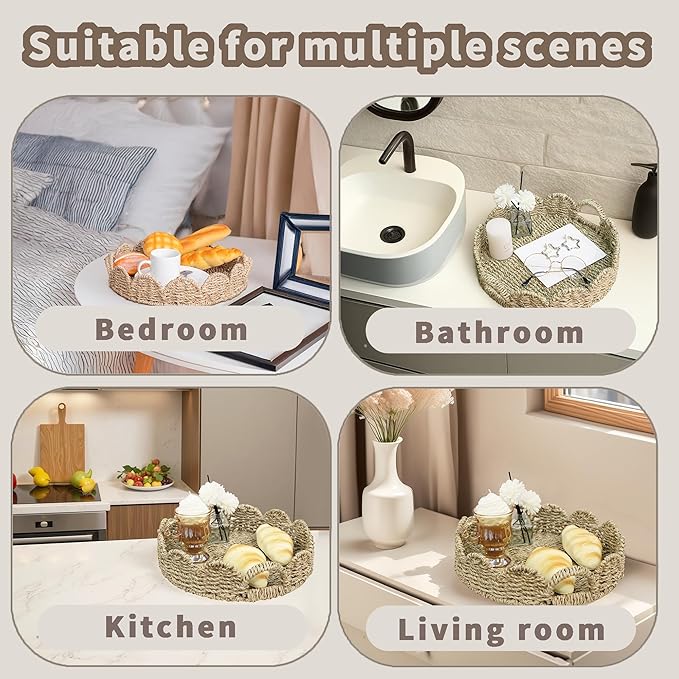 - 3.Perfect Design : With its scalloped edges inspired by the elegant shape of a seashell, the seagrass round serving tray showcases a distinctive design and eye-catching charm. It makes an ideal holiday gift for family and friends.