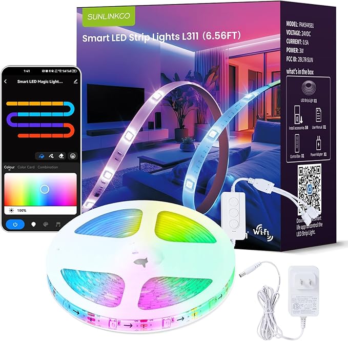 - [Multiple Control Ways]: Easy to control the strip light via 3 ways, you can use Smart Life APP, control box on the USB cable or intelligent voice control through Alexa and Google Assistant, setting the light colors, brightness and modes; Light strip features timer function which can turn on the light automatically at the preset time, providing a fantastic lighting effect to create unforgettable experience for birthday party, holiday, Halloween, Christmas, Valentine’s Day, etc