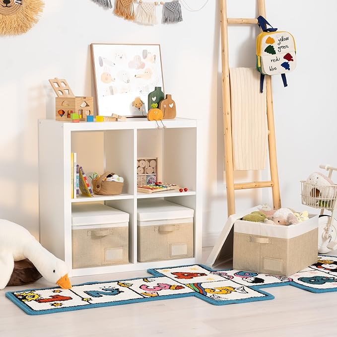 - Stackable and Foldable: The covered storage box is made of heavy-duty thick cardboard around the edges, with a thick base and lid, allowing you to maximize your storage space when stacked. When not in use, these storage boxes easily fold flat to save space.