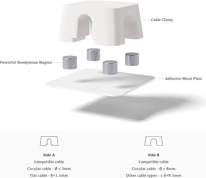 - Strong Magnetic Hold - Each organizer has high-strength neodymium magnets embedded in its four feet, ensuring a secure hold and preventing cable movement.
