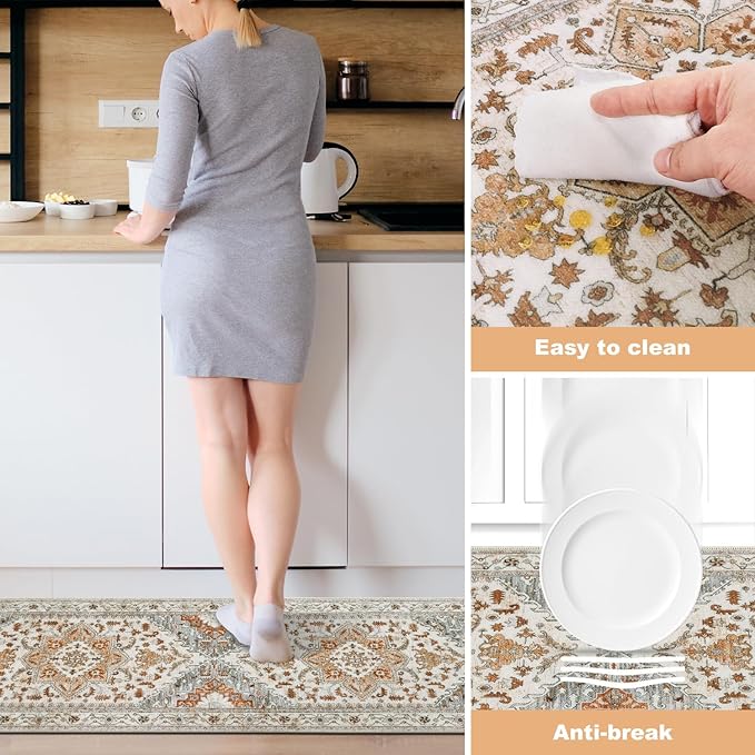 - 【Machine Washable Rug】The kitchen runner is stain resistant and easy to clean. Spills can be easily wiped off and vacuuming for daily cleaning. Washing machine is also available for a deeper clean. Wash in cold water and do not add bleach
