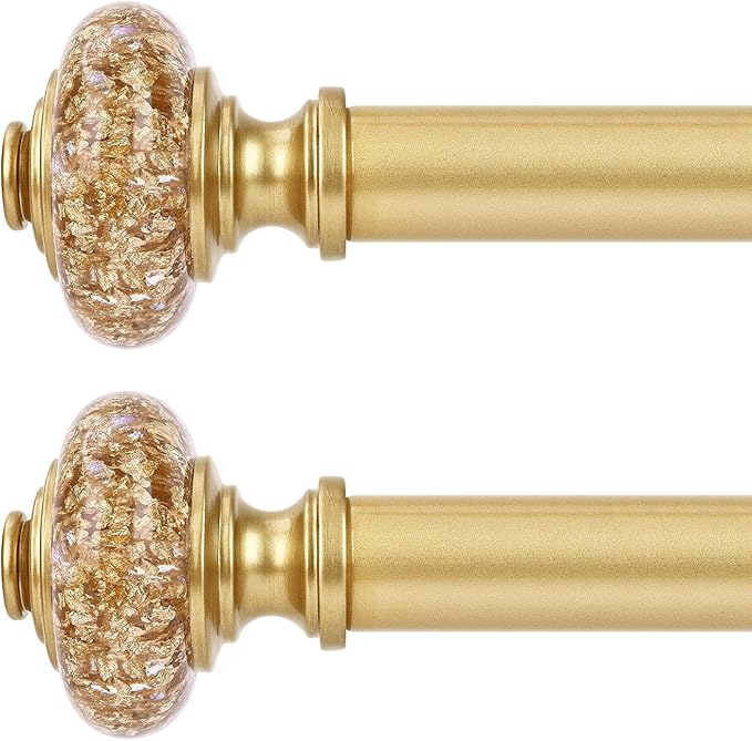 - [GOLD CRYSTAL CURTAIN ROD]: This decorative curtain rod with crystal gold foil finials has an elegant look that blends well with a variety of home decor styles. Perfect for farmhouses, bedrooms, living rooms, kitchens, sliding glass doors, dining rooms and patio decor